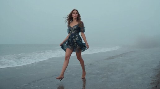 Далее: красивые девушки на пляже в коротком платье стиле барокко, романтика и туман_2