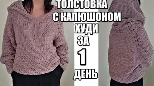 "Даже школьник справится за один день!" Свитер с капюшоном, худи и толстовка из Alize Puffy Fine без спиц и крючка