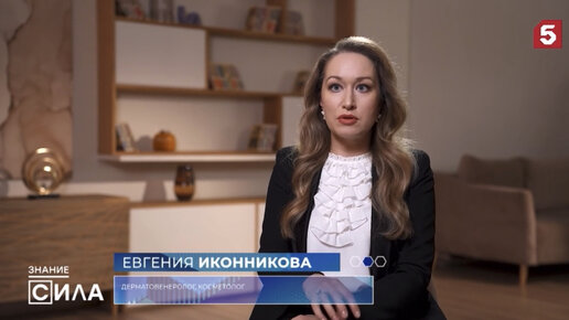 Иконникова Евгения Владимировна в программе "Знание - сила" на 5 канале 19.03.2024. Как сохранить молодость кожи.