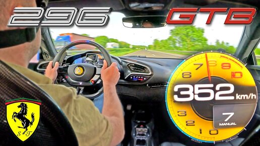 FERRARI 296 GTB // 352KMH - 220MPH // 830HP V6 Hybrid on AUTOBAHN!