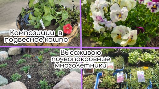 Высаживаю многолетники: аубреция, гвоздика, вероника, дельфиниум. Миксую петунию и лобелию в кашпо