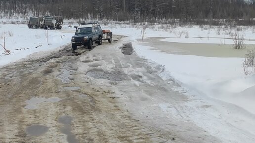 Весенняя распутица - проезжаем наледь на зимнике