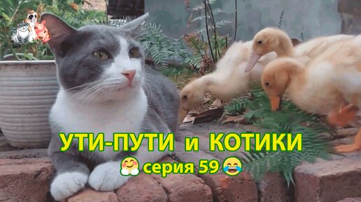 Ути-пути с котиками серия 59 🤗 Милая дружба Кошек и Уток на птичьем дворе 🐈🐈⬛🦆