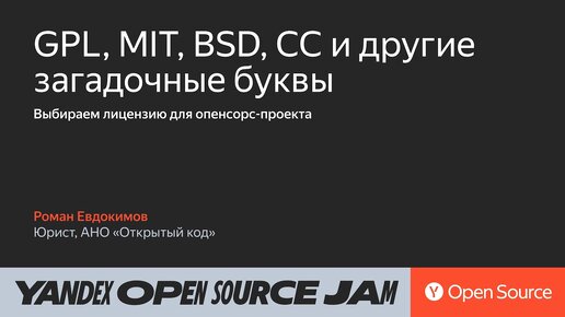 GPL, MIT, BSD и СС — выбираем лицензию: мастер-класс / Роман Евдокимов, АНО «Открытый код»