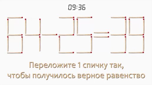 Задача 66. Переложите 1 спичку так, чтобы равенство осталось верным (64-25=39)