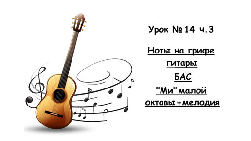 Ноты на грифе гитары. Бас "Ми" малой октавы + мелодия ч.3