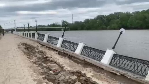 Обрушение набережной Оренбурга после паводка. Видео А.Архипов.4