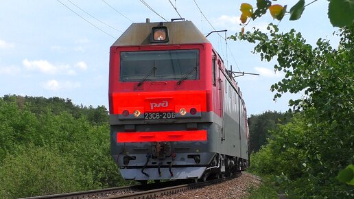 2ЭС6-206 "Синара" с грузовым поездом и приветливой бригадой