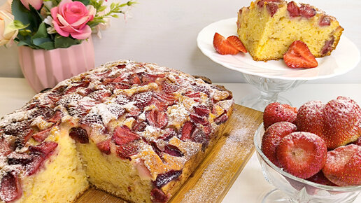 Мой ходовой пирог в сезон клубники--Клубничный пирог который тает во рту. Вкуснее любого торта.