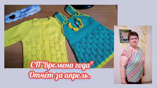СП. Времена года. Апрель. Отчёт. Связала детский жакет и сарафан "Бабочки" для внучки, кофточку "Диагональ" для себя спицами.