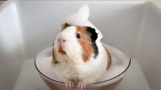Груминг день. Морская свинка впервые в жизни принимает ванну