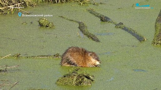 Ондатра с аппетитом поглощает свой завтрак