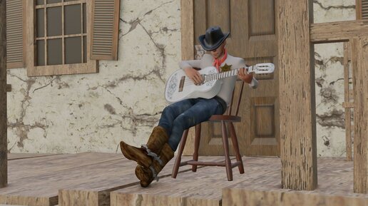 BLENDER 3.6 Аниматика свадьба Бель и Генри он с гитарой