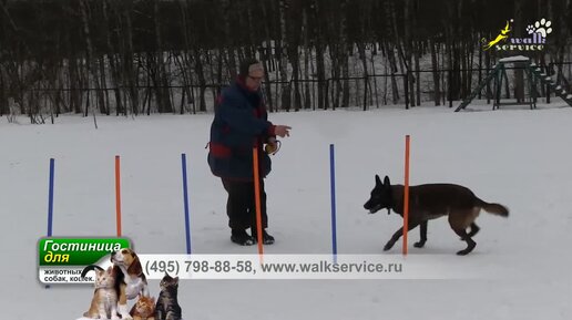 Аджилити, дрессировка воспитание собак, змейка обучение мячом, малинуа