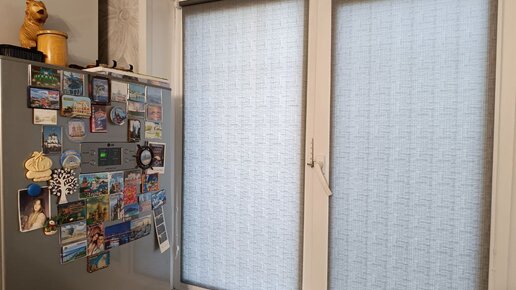 Рулонные шторы MINI с тканью КРИС 1852 серый, на окна под интерьер кухни. Защита фасадов от солнца.
