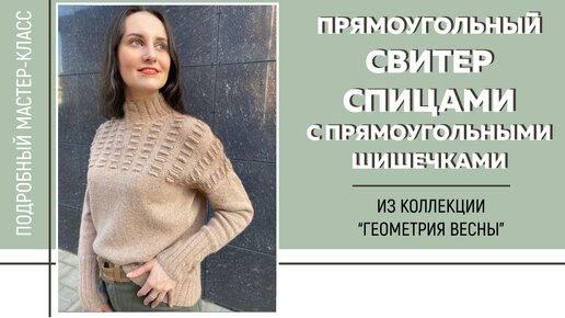 ПРЯМОУГОЛЬНЫЙ СВИТЕР с прямоугольными шишечками из коллекции «Геометрия весны» || Подробный МК