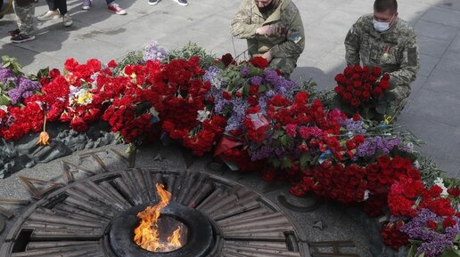 Праздник в сердцах, несмотря ни на что: жители Киева несут цветы к Вечному огню