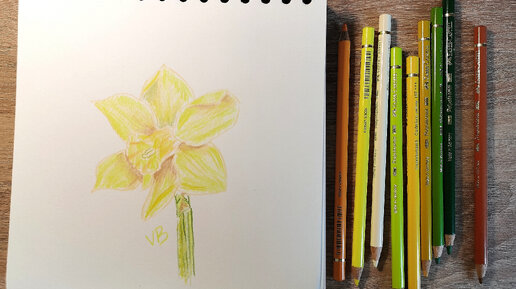 Желтый нарцисс цветными карандашами || Учимся Рисовать