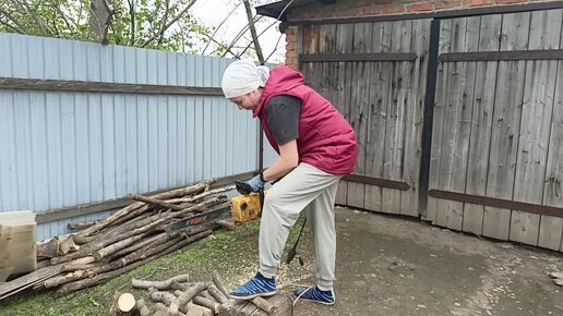 Трудящуюся Наташку Вам в ленту - пилю дрова. Сама... Как взрослая. 😉