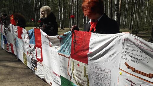 "Нить" Бессмертного полка" от Питерских школьников. 9 мая. Санкт-Петербург. Парк «Сосновка». Мемориал лётчикам военного аэродрома.