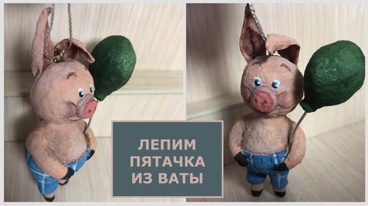 Ёлочная игрушка из ваты Пятачок, пошаговый мастер-класс