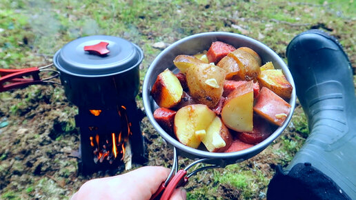 Поход в лес,Укрытие из Плащ-Палатки,Печка-Щепочница.