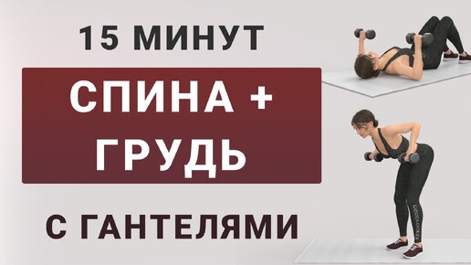 15 мин ГРУДЬ + СПИНА с гантелями💪 Силовая тренировка стоя и на полу (11 упражнений в 2 круга)