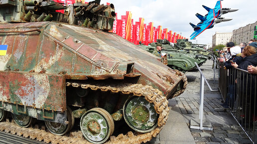 Выставка разбитой трофейной техники НАТО 9 мая в Парке Победы на Поклонной горе. Leopard (Леопард), Abrams (Абрамс), Marder (Мардер).