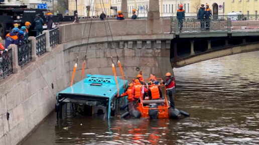 В Петербурге вытащили на сушу упавший в реку автобус