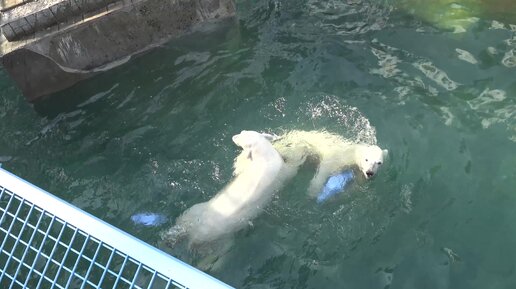Медвежата играют с подаренными канистрами. 09.05.2024