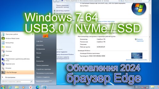 Windows 7 64 Русский, авто активация, максимальная - USB3.0, NVMe, SSD / обновы 05.2024