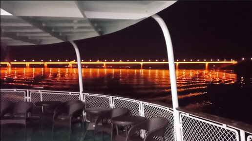 Вечерняя развлекательная программа на теплоходе Алдан ⚓⛵. Проходим под красивейшим мостом, все в огнях, красотища....