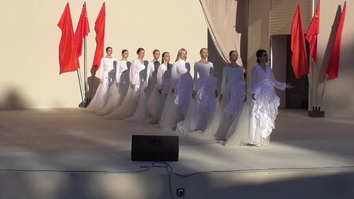 Музыкальное выступление в белых платьях