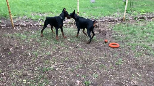 Как знакомятся кобели доберманы