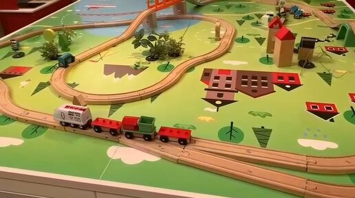 Паровозик Брио едет по железной дороге