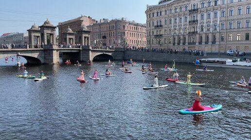 Как сапсерферы рассекали по реке Фонтанке в Санкт-Петербурге на водном карнавале «Фонтанка SUP»