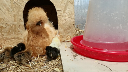 Шелковая курица вывела цыплят. Как выросли цыплята рыжие за месяц?