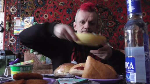 алкогольный мукбанг лапша akura гамбургер хот дог водка избушка анегири забава пирожки с капустой