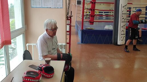 Мастер спорта СССР по боксу Роберт Люгай помогаетв подготовке к первенству России по кикбоксингу