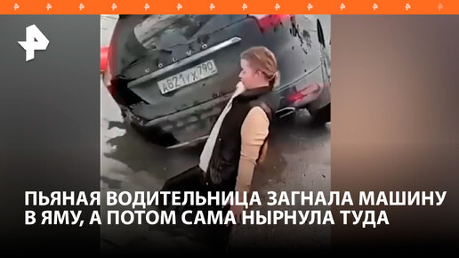 Пьяная водительница загнала "Вольво" в яму с водой и нырнула туда за упавшим телефоном. Кадры из Подмосковья расходятся в соцсетях