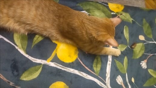 Далее: Кот перед ужином дышит воздухом и играет с жуком. 😼🍑