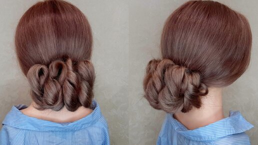 Красивый лёгкий низкий пучок на длинные волосы в 2024 году