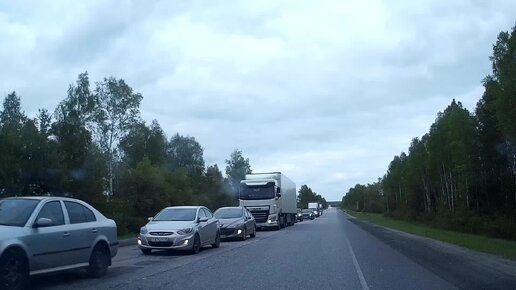 Вереница машин на пару десятков километров на М-5 12 Мая . Путятинский округ Рязанская область .