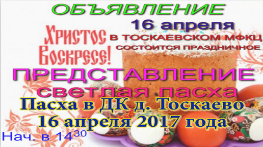 Пасха в ДК д. Тоскаево 16 апреля 2017 года