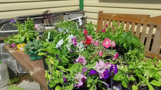 Пересадка петунии, теплица, цветущие растения в воде.