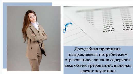 Досудебная претензия, направляемая потребителем страховщику, должна содержать весь объем требований, включая расчет неустойки.