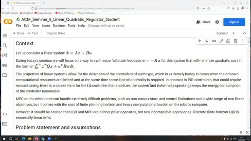 Advanced Control Methods 2024. Seminar 8. Linear quadratic regulator