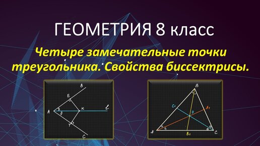 Геометрия 8. Четыре замечательные точки треугольника. Свойство биссектрисы.