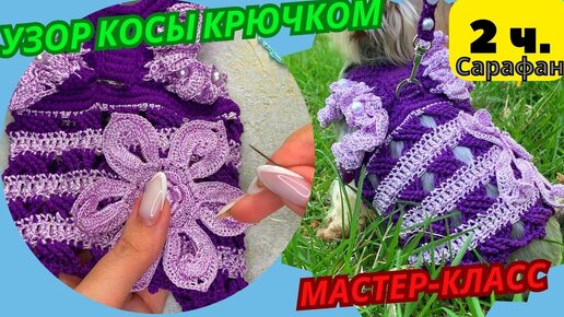 Вязание шлейки сарафана для собаки крючком узором "объемная коса" (Мастер-класс) 2 часть