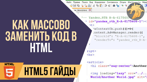Как массово заменить многострочный код в HTML файлах | Sublime Text